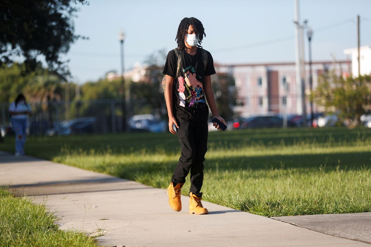طالب يضع كمامة في تامبا بفلوريدا في العاشر من أغسطس آب 2021. تصوير: أوكتافيو جونز - رويترز