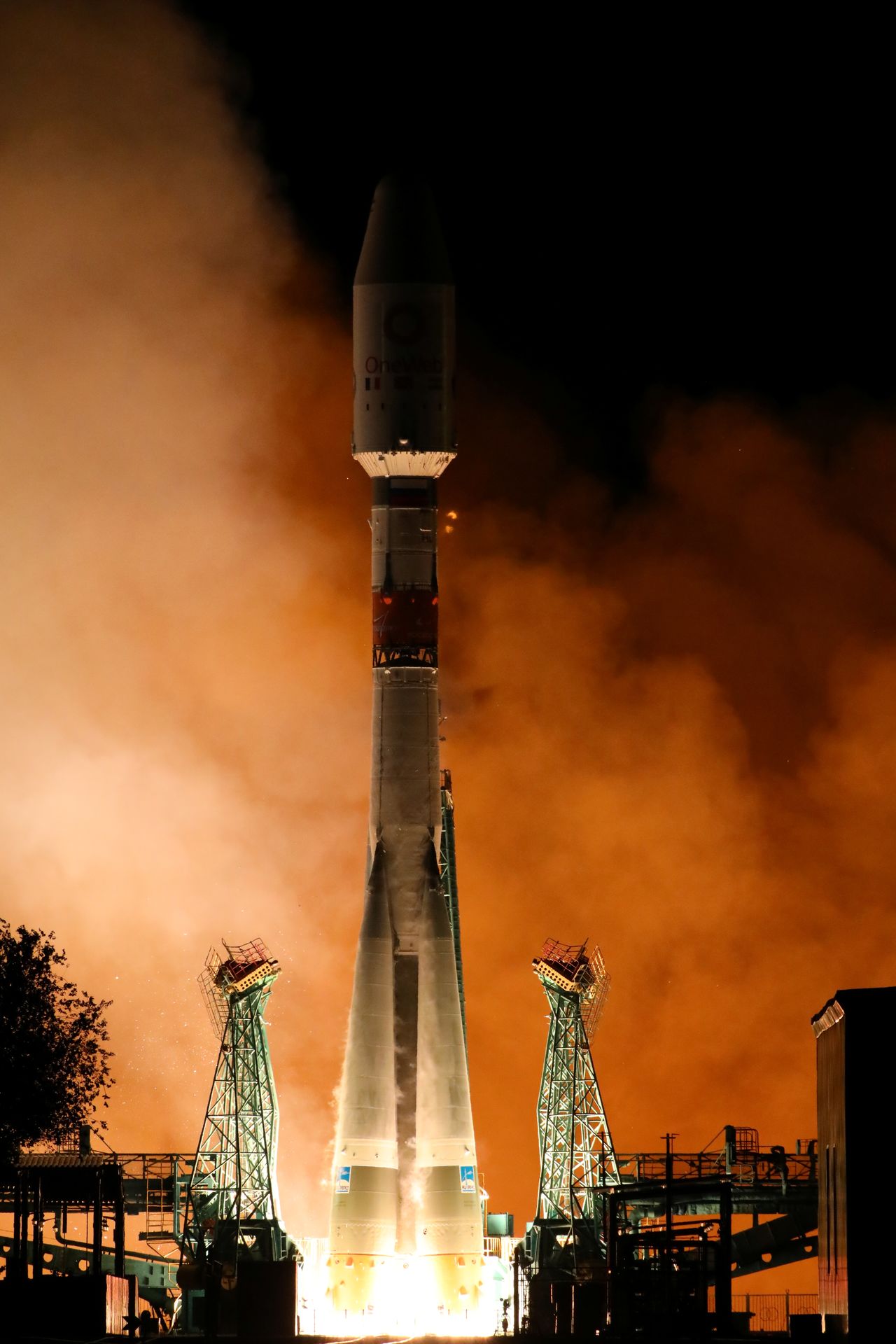 أقمار صناعية للشركة البريطانية وان ويب تنطلق من قاعدة إطلاق الصواريخ الفضائية في قازاخستان يوم الثلاثاء. صورة لرويترز.