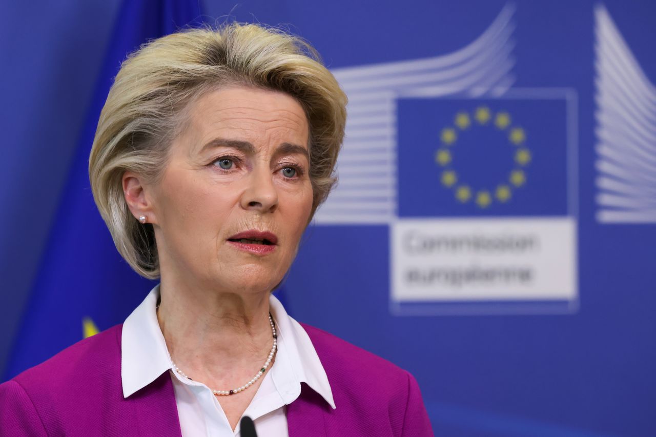 رئيسة المفوضية الأوروبية أورسولا فون دير لاين تتحدث في بروكسل يوم 18 أكتوبر تشرين الأول 2021. صورة لرويترز من ممثل لوكالات الأنباء.