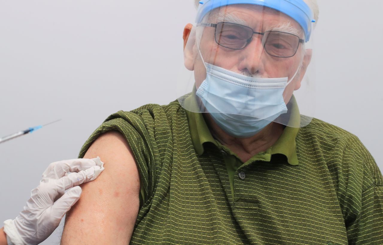 رجل يحصل على تطعيم ضد كوفيد-19 في كولونيا بألمانيا يوم 23 نوفمبر تشرين الثاني 2021. تصوير: فولفجانج راتاي - رويترز.