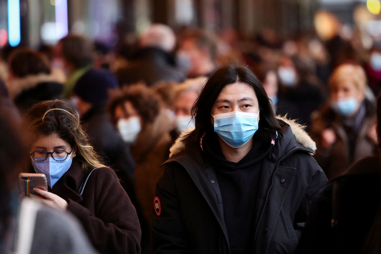 أناس يضعون كمامات للوقاية من فيروس كورونا في شارع تجاري بوسط العاصمة الفرنسية باريس يوم 8 ديسمبر كانون الأول 2021. تصوير: سارة ميسونييه - رويترز.