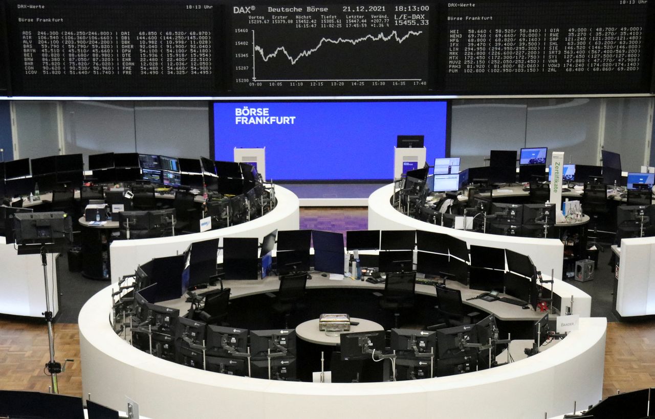 مؤشر داكس الألماني في بورصة فرانكفورت يوم 21 ديسمبر كانون الأول 2021. تصوير رويترز.