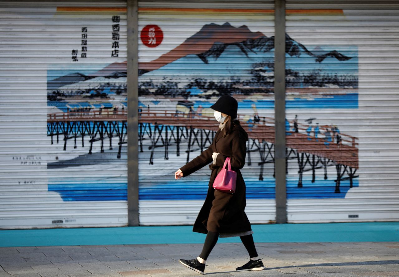 امرأة تضع كمامة للوقاية من فيروس كورونا في حي تجاري في طوكيو يوم الثلاثاء. تصوير: كيم كيونغ هون - رويترز.