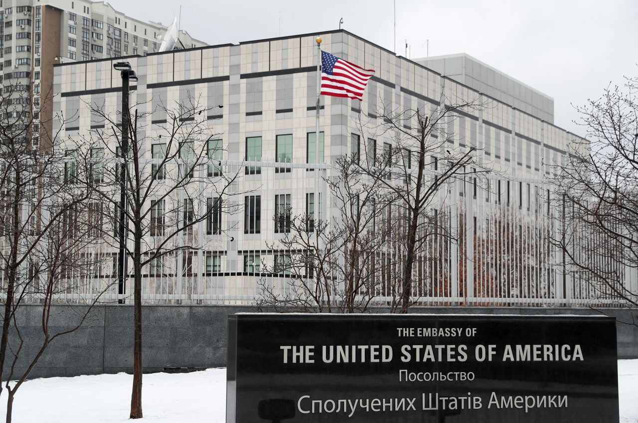 منظر عام للسفارة الأمريكية في كييف بأوكرانيا يوم السبت. تصوير: فالنتين أوجيرينكو - رويترز.