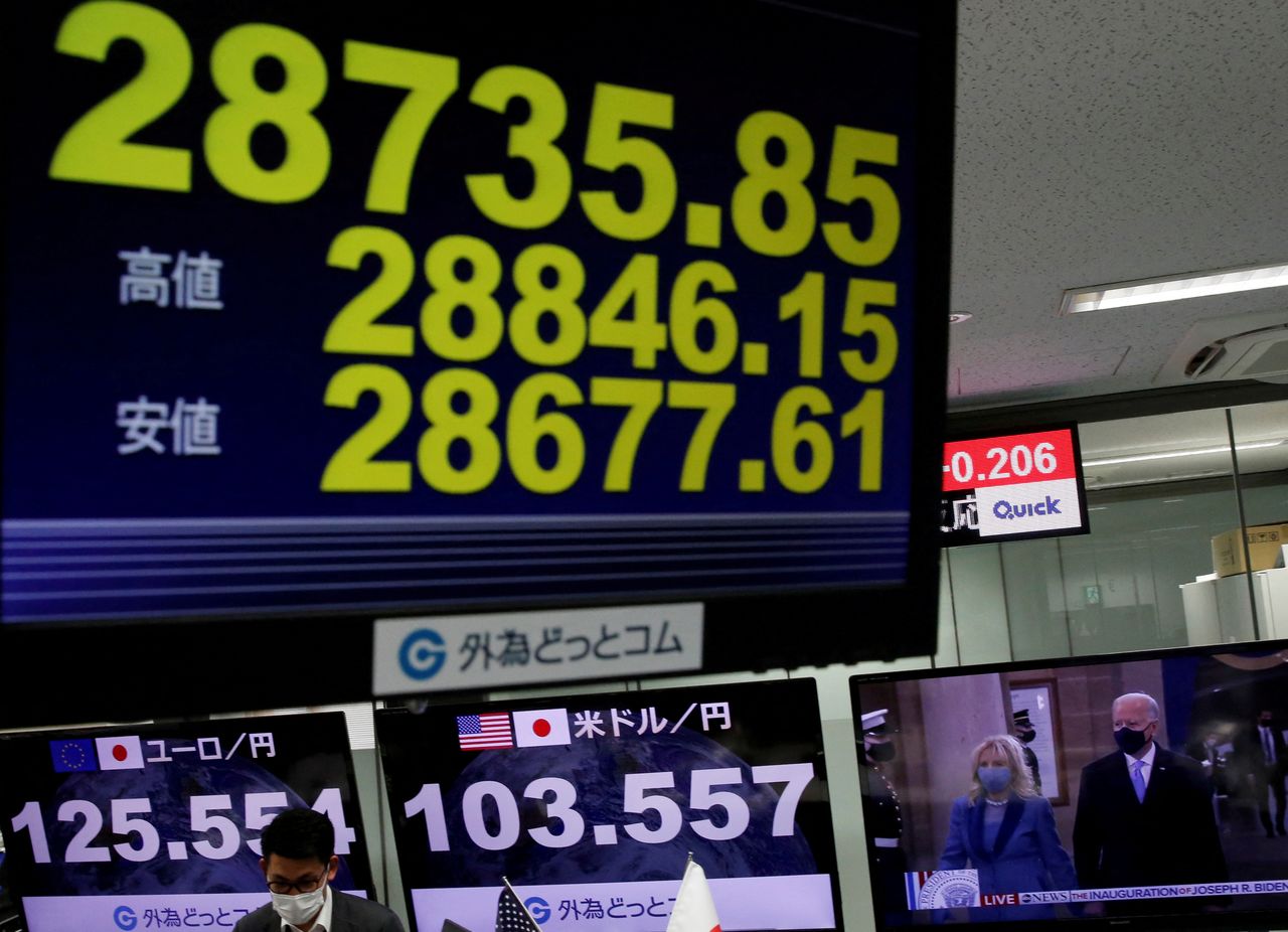 شاشات تعرض بيانات مؤشر نيكي للأسهم اليابانية في طوكيو في صورة من أرشيف رويترز.