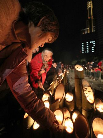 فقد تجمع حوالي 7500 شخص في حديقة حي تشوؤ في الصباح الباكر لإحياء ذكرى الزلزال المدمر، حيث أضاءوا حوالي 5000 شمعة من الخيزران الذي شكل خطوطًا تقرأ كلمة يابانية تعني "تذكر" وكذلك "1.17" وهو يوم وقوع الزلزال.