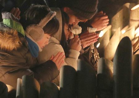 قدمت العائلات الثكلى والمشاركون الآخرون صلاة صامتة في الساعة 5:46 صباحًا (8:46 مساءً بتوقيت غرينتش يوم الخميس)، في نفس الوقت الذي وقع فيه الزلزال الذي بلغت قوته 7.3 درجة المنطقة في 17 يناير/ كانون الثاني 1995.