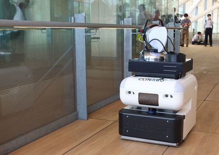 تم استخدام 3 أنواع من الروبوتات للتطهير خلال العرض. قامت الروبوتات بتعقيم الدرابزين والمقاعد وأجزاء أخرى من المحطة عن طريق رش المطهرات أثناء التحرك تلقائيًا استنادًا إلى بيانات الخريطة.