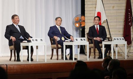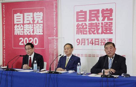 بدأ الأمين العام السابق للحزب الليبرالي الديمقراطي شيغيرو إيشيبا، 63 عامًا، وكبير أمناء مجلس الوزراء سوغا يوشيهيدي، 71 عامًا، ورئيس مجلس أبحاث السياسة التابع للحزب الليبرالي الديمقراطي، كيشيدا فوميؤ، 63 عامًا، السباق رسميًا يوم الثلاثاء، عندما قدموا أوراق ترشيحهم وحضروا مناقشة مشتركة ومؤتمر صحفي .