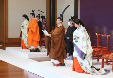 أعلن الإمبراطور صعود شقيقه الأصغر البالغ من العمر 54 عامًا في غرفة القصر ”ماتسو-نو-ما“ التابعة للقصر في الطقوس الأساسية لمراسم ”ريكوشي-نو-ري“.