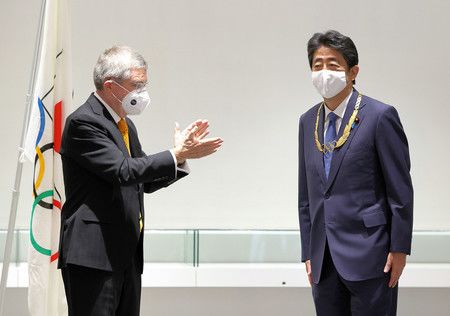 منح رئيس اللجنة الأولمبية الدولية الذي يزور اليابان حاليا توماس باخ رئيس الوزراء الياباني السابق شينزو آبي الوسام الأولمبي الذهبي لمساهمته في الحركة الأولمبية.