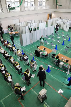 أجرت وزارة الصحة اليابانية ومدينة قريبة من طوكيو تدريبات مشتركة يوم الأربعاء لإدارة مكان للتطعيم ضد فيروس كورونا الجديد.