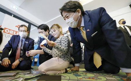 وزير الخارجية الياباني يزور منشأة لاستقبال الذين تم إجلاؤهم من أوكرانيا في بولندا