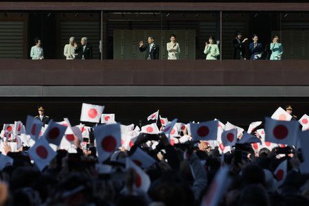 ظهر الإمبراطور ناروهيتو والإمبراطورة ماساكو على شرفة القصر إلى جانب أفراد آخرين من العائلة الإمبراطورية خمس مرات خلال الحدث. وعلى الرغم من التحديات الصحية التي واجهتها، ظهرت الإمبراطورة الفخرية ميتشيكو، التي أصيبت بكسر في عظم فخذها الأيمن في الخريف الماضي، ثلاث مرات برفقة الإمبراطور الفخري أكيهيتو.