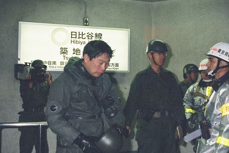 بعد رشّ مادة محيّدة لمقاومة غاز السارين، خلع ناكامورا قناعه الواقي من الغاز ليختبر بنفسه مدى أمان المنطقة. وأضاف: