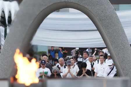 منذ ساعات الفجر الأولى، احتشد الزوار أمام النصب التذكاري لضحايا القنبلة الذرية، حيث وقفوا في صمت، يضعون أيديهم معًا، يقرأون الدعاء، ويسترجعون وجع الثواني التي غيّرت وجه مدينتهم إلى الأبد.