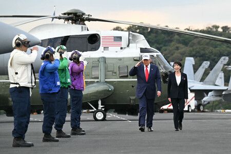 طوكيو - (جيجي برس)-- أظهرت رئيسة الوزراء اليابانية تاكايتشي ساناي والرئيس الأمريكي دونالد ترامب يوم الثلاثاء وحدتهما في خطاب ألقياه أمام أفراد من قوات الدفاع الذاتي اليابانية والقوات الأمريكية في اليابان على متن حاملة الطائرات التي تعمل بالطاقة النووية يو إس إس جورج واشنطن.