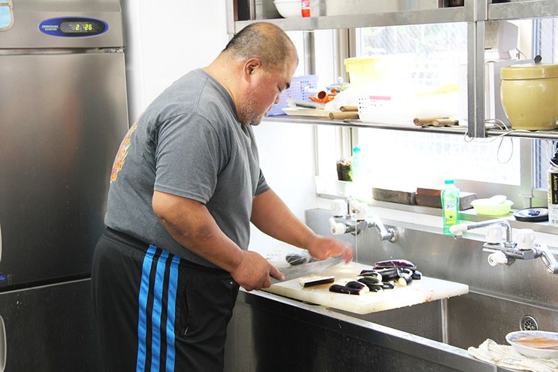 يقوم اللاعبون بتحضير الطعام المخصص المعروف بـ"التشانكو" بإشراف مصارع السومو السابق "يوهو".