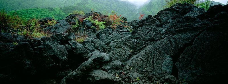 ”عندما تمشي في الواقع من خلال الغابات، الحقيقة مختلفة تماما عن الصورة الشعبية. يسمونها ”بحر من الأشجار“، وبالتأكيد، في يوم ماطر أو ضبابي، يبدو الأمر وكأننا نمشي في قاع البحر. عندما أكون داخل هذا الجو السميك من الخضرة، أشعر حقا بقوة الحياة المنبثقة من هذه الأشجار. تنشر الأشجار جذورها عبر طبقة رقيقة من الأرض التي تراكمت على الحمم. تبدو جذوع وفروع كل شجرة وكأنها تحفر طريقها. تلك الأشجار يكافح بكل ما أوتي من قوة للعيش“.