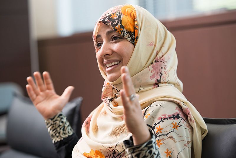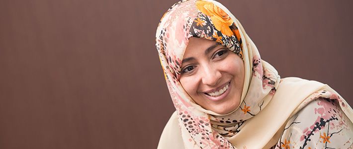 عرفت بشجاعتها وجرأتها على قول الحق ومناهضة انتهاكات حقوق الإنسان والفساد المالي والإداري، ومطالبتها الصارمة بالإصلاحات السياسية في البلد، وكذلك بعملية الإصلاح والتجديد الديني، كانت في طليعة الثوار الذين طالبوا بإسقاط نظام علي عبد الله صالح. وهي أول عربية تحصل على جائزة نوبل للسلام، تحدثنا اليها في طوكيو عن رؤيتها للمستقبل بالنسبة للمرأة وكيف يمكن أن تحصل على حقوقها كاملة. وكان اللقاء التالي.