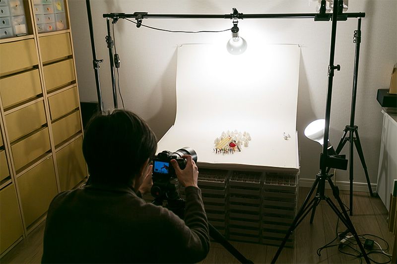 بدأ تاناكا بمجموعة مختارة أصلية مكونة من حوالي 50 مجسم، ولكنه يمتلك الآن أكثر من 10 آلاف قطعة. وحين قام بفتح الأدراج المكدسة في الاستديو الخاص به ليطلعنا على عدد لا يحصى من الشخصيات التي تم فرزها وترتيبها بعناية. وأغلب تلك المجسمات من إنتاج شركة بريزر الألمانية الشهيرة بنماذج خطوط السكك الحديدية. وتمتلك تلك المجسمات تفاصيل دقيقة وألوان زاهية. ويبلغ طول أصغر تلك المجسمات إلى 5 ملليمتراً. ويتملك العديد من المجسمات المتنوعة والتي تكاد تتطابق في الشكل ولكنها تختلف في الحجم، بحيث يستطيع أن يوائم بينها وفقاً لأحجام العناصر المصاحبة مثل الخضروات أو ورق المرحاض. وعلى الرغم من كون هذا العالم متناهي الصغر يصل إلى بضعة ملليمترات، إلا أن تاناكا يهتم بالتفاصيل الدقيقة للقيام بعمله على أكمل وجه.
