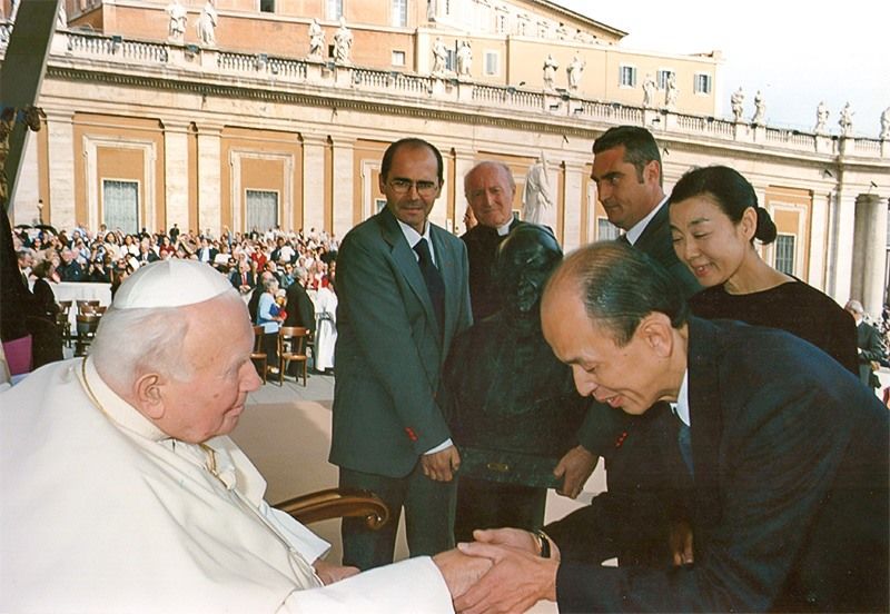 أوكومورا نوبويوكي حسناً، لم أكن أتخيل أبداً ولو في أكثر أحلامي جموحاً أن أقوم بذلك وأن لست إيطاليا ولا كاثوليكيا بصنع مثل هذا التمثال النصفي للبابا.
