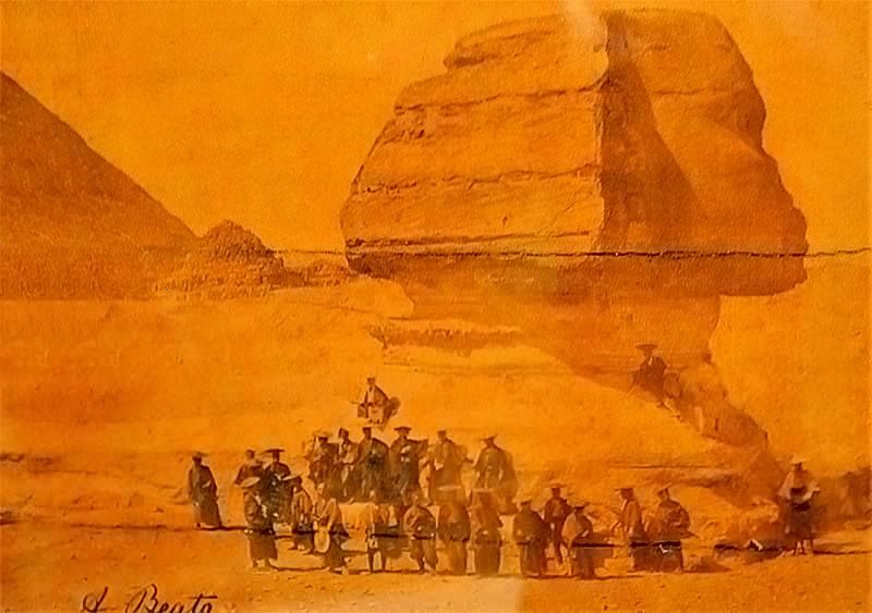 لوحة في بهو السفارة المصرية في طوكيو لصورة بعثة الساموراي التي مرت بمصر.