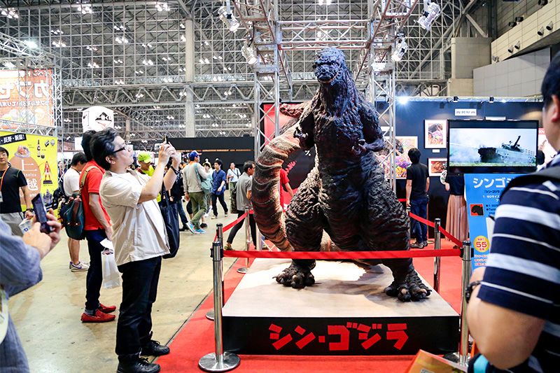 واحد من إحدى المجسمات المتعددة مأخوذ من فيلم عودة غودزيلا معروض خلال فعاليات المعرض.