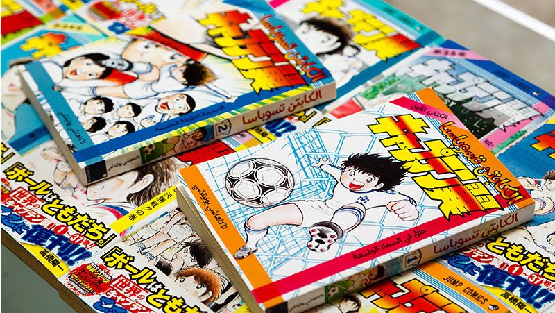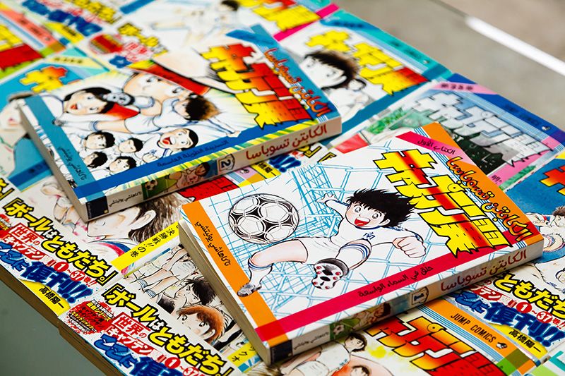 عبادة يفرج زملائه في الجامعة على النسخة العربية من مانغا كابتن تسوباسا.