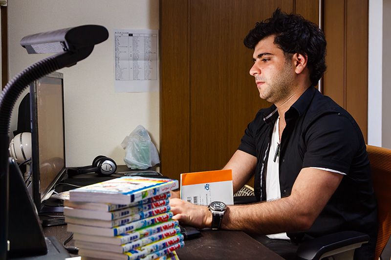 عبادة في الحرم الجامعي لجامعة طوكيو للدراسات الأجنبية، وهو يدرس الآن في الفرقة الرابعة لكلية الدراسات الدولية بنفس الجامعة.