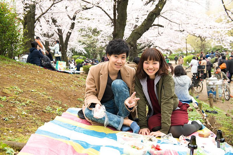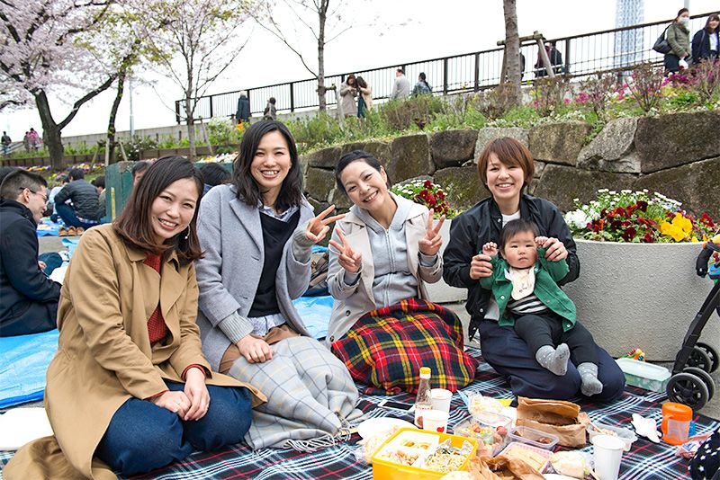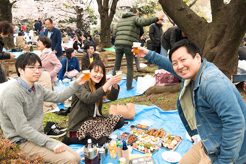 تحدثنا إلى مجموعة من الصديقات من محافظة كاغوشيما ممن يَعِشنَ في طوكيو حاليا. حول نزهتهن الخاصة تحت أشجار الساكورا وما اخترن من أشياء لطيفة جدا مثل أطباق عليها رسوم القلب مع شوكة وسكين ومفرش مائدة منقش. سيما وأن تلك الأطعمة كانت ملونة ومتنوعة جدا حيث جلبت كل واحدة من الصديقات طعامها الخاص: معكرونة مع لحم الخنزير والخضروات، سلطة الروبيان المطبوخ وفول الصويا، لفائف الربيع النية المحشوة بالخضار، والدجاج المقلي الذي يبهج الجميع؛ أنصاف بيض مسلوق، عجة على الطريقة اليابانية، بطاطا مقلية ورقائق وسندويشات من أنواع مختلفة وكلها تتضمن خيارات عديدة ومتنوعة حيث من المستحيل أن تتعب من تناول الطعام نفسه. مما دفع بإحدى الصديقات للقول ”نحن لا نشرب الكحول. وكل عام نقوم بنزهة هانامي صحية جدا“.