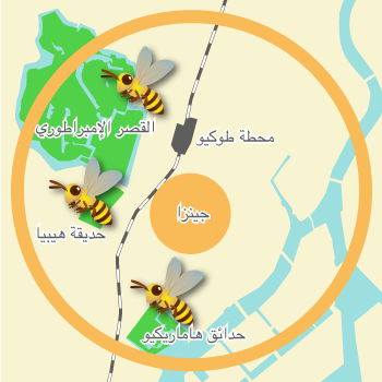 ومزرعة تربية النحل في المناطق الحضرية هي ثمرة عمل منظمة غير ربحية تدعى ”مشروع تربية النحل في جينزا“ أو Ginpachi التي تأسست في مارس/آذار ٢٠٠٦ من تاناكا أتسوؤ. وقد بدأ الأمر عندما علم تاناكا، الذي استأجر مكانا في جينزا، من أحد مربي النحل أنه قد يكون من الممكن وضع نحل العسل على سطح مبنى كامي باروبو كايكان. ومن هذا الموقع، يمكن للنحل جمع الرحيق من حديقة هيبيا وحدائق القصر الإمبراطوري، الموجودة ضمن دائرة نصف قطرها حوالي ثلاثة كيلومترات. علما بأنّ النحل حساسً للغاية تجاه المبيدات الحشرية والملوثات البيئية الأخرى، ولكن القصر الإمبراطوري خالٍ نسبيا من الكيمياويات الزراعية وبذلك تبين بشكل مفاجئ أن حيّ جينزا هو منطقة مثالية لتربية النحل.