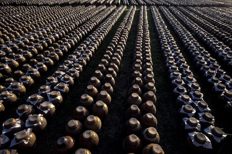 ويقوم الحرفيون بفحص الجرار يومياً للتأكد من أن كل شيء على ما يرام. فأثناء تنقلهم بين الجرار يستمعون لأصوات التخمير، ويتحققون من مدى صفاء السائل، حتى أنهم يتأكدوا من الطعم والرائحة للوقوف على أية اختلافات حتى ولو طفيفة في الجودة.