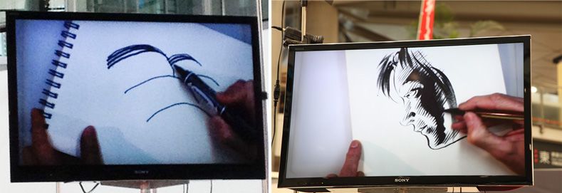 وخلال المناقشة ، تناول أوراساوا مباشرة قلمه وبدأ بالرسم سائلا شوتين عما إذا كان يبدأ الرسم من المناطق قليلة الظل أو الكثيرة في المشهد. وعندئذ رد شوتين برسم صورة وجه إنسان. وقد أعجب الجمهور ببراعة جوابه والتي يمكن تنفيذها في المانغا فقط.