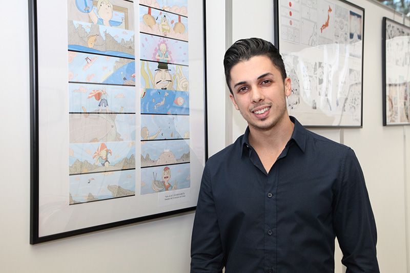 فاز خافيير غارسيا بالجائزة الكبرى في مسابقة القصص المصورة الأولى التي أقامها مركز سرفانتيس الثقافي وجامعة بونساي للفنون (الصورة مأخوذة في معرض مركز سرفانتيس الثقافي في مهرجان المنغا الدولي).
