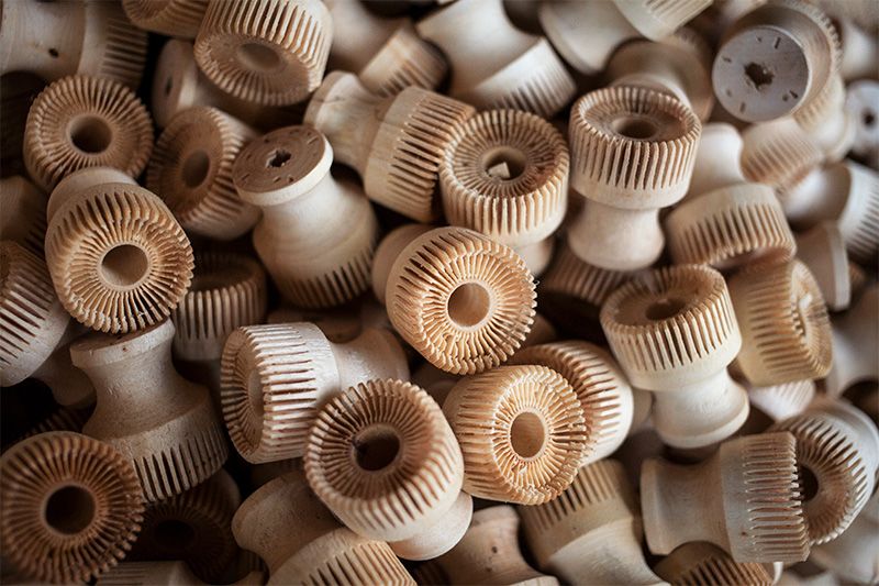 عمل يدوي دقيق لربط الحلقة الرأسية بالقضيب الرئيسي بخيوط قطنية
