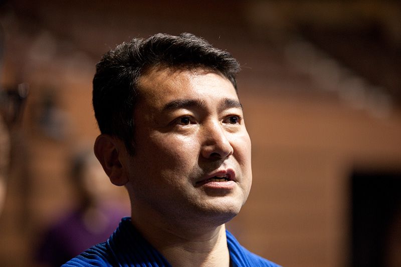 جاء ”إكتشاف“ السيد مياكي للجمباز الرجالي متأخرا جدا، وكان ذلك في شهر فبراير/ شباط ٢٠١٣. حيث انجذب المدرب مياكي لفنون فريق الجمباز الإيقاعي الرجالي الحديث بجامعة أوموري .اي عندما حصل فريق جامعة أوموري على لقبه الرابع في بطولة اليابان وجاء على رأس الفرق المتنافسة في بطولة الجامعات في اليابان للمرة الحادية عشر. فقد رأى السيد مياكي في وثبات الشباب في فريق أومروي أملاً في المستقبل وهو المهتم بشدة بإعادة الأعمار في منطقة توهوكو الواقعة شمال شرق اليابان بعد وقوع التسونامي.