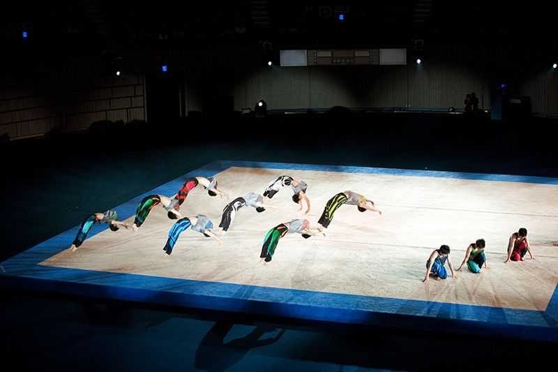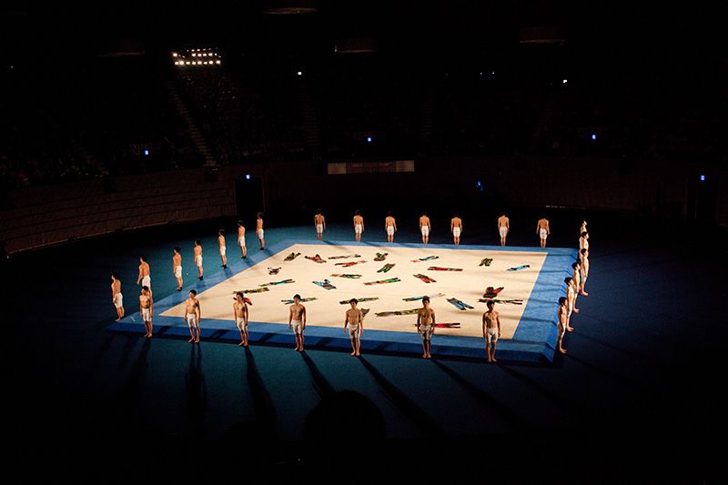 لقد شعرت هذه المرة بأهمية مثل هذه الفعاليات لنشر رياضة الجمباز الإيقاعي للرجال على المستوى العالمي. وأعتقد أن مشاركة كل أعضاء الفريق المؤلف من ٢٧ عضواً في العرض على عكس المباريات قد سمح بتقوية روح الفريق لدى اللاعبين. وعلى الرغم من وجود الكثير من الأيام التي إمتد فيها التدريب لمدة ١٢ ساعة في اليوم حتى منتصف الليل، فقد كان له فائدة عظيمة. ولكن من ناحية أخرى لا يجب إهمال التدريب من أجل البطولة الذي أود أن يبدأ غدا (اللاعب سوزوكي جين، طالب في الصف الثاني).