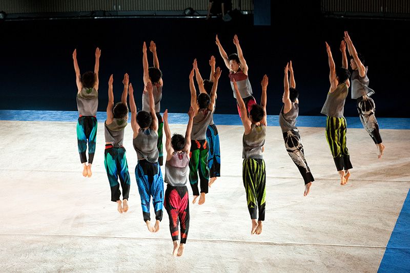 ومقابل المرونة الجميلة التي تميز الجمباز الإيقاعي النسائي، فإن سحر الجمباز الإيقاعي الرجالي يكمن في الفنون الأكروباتية التي أحيت ديناميكية السرعة والقوة في الأداء. ويعد السيد ميايكي إيسيي واحداً من مصممي الموضة العالميين الذين سحروا بهذه القفزات السحرية.