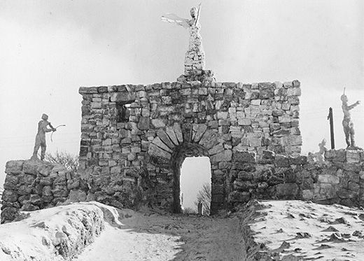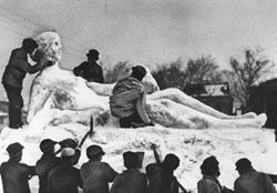 طلاب المرحلة الإعدادية والثانوية وهم يصنعون تماثيل من الثلج عام ١٩٥٠.