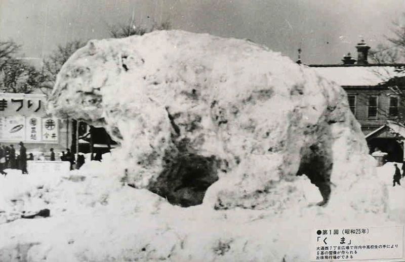 منحوتة على شكل (دب) في الدورة الأولى لمهرجان سابورو للثلوج.
