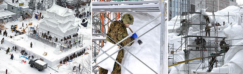 أما الدورة السادسة للمهرجان فقد كانت أول مرة يشارك بها أعضاء قوات الدفاع الذاتي اليابانية (١٩٥٥)، حيث حاولوا رفع مستوى التحدي بصنع أشكال ومجسمات ثلجية أكبر حجماً. أما في الدورة العاشرة للمهرجان (١٩٥٩) شارك بها ما يقرب من ٢٥٠٠ فرد من قوات الدفاع الذاتي اليابانية، وقاموا بنحت عدد كبير من المجسمات الكبيرة والضخمة من الثلوج، وكان هذا العام أيضاً أول عام يقدم فيه مهرجان الثلوج في الصحف والتلفزيون. ومن بعد ذلك بدأ السياح من هونشو يزدادون بصورة كبيرة حتى أصبح اسم ”مهرجان سابورو للثلوج سابورو“ معروفا في جميع أنحاء البلاد.
