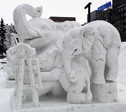 منحوتة بعنوان (الصعود) في الدورة الرابعة لمهرجان سابورو للثلوج.