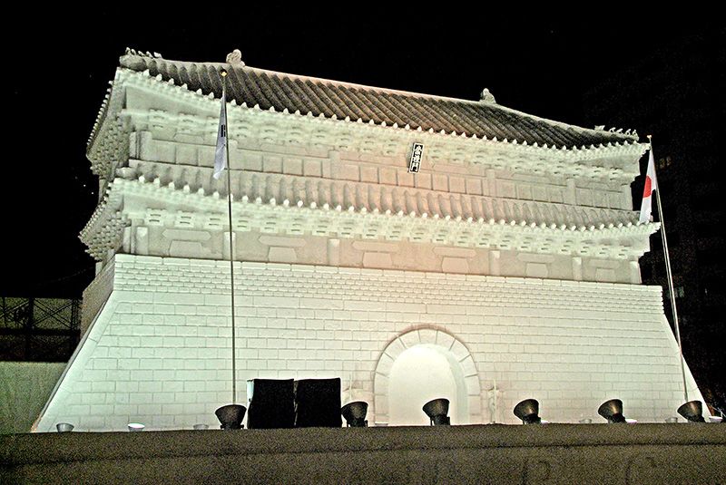 منحوتة من تايلاندا بعنوان (قصر تشاكلي هامر بلاسيت) في الدورة الثامنة والخمسين لمهرجان سابورو للثلوج. جميع الحقوق محفوظة HBC.