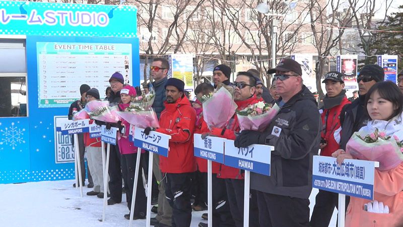 في عام ٢٠١٤، بالإضافة إلى هاواي، ماليزيا، نيوزيلندا، سنغافورة، تايلاند، هونغ كونغ، بولندا، شاركت العديد من المدن مثل بورتلاند (الولايات المتحدة الأمريكية)، دايجون ( جمهورية كوريا) في مهرجان سابورو للثلوج والجليد. وقد استمرت المنافسات ٤ أيام من ٤-٧ فبراير/شباط ، وتنافست فيها الفرق على صنع التماثيل والمجسمات المختلفة.