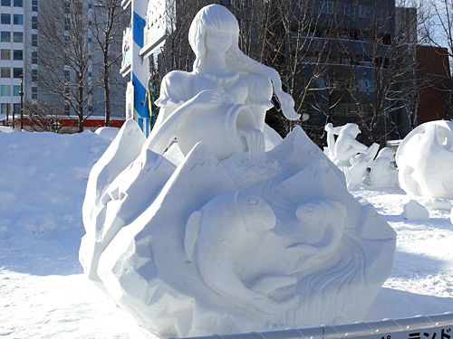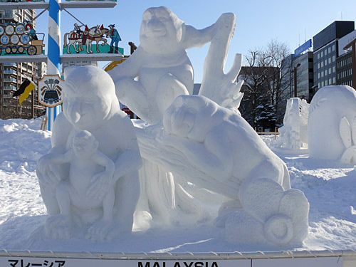 انطلقت ”منافسات النحت على الجليد الدولية“ لأول مرة عام ١٩٧٤ بهدف تعميق العلاقات الدولية وكذلك تعزيز الصبغة الدولية للمهرجان. وقد شاركت ٦ فرق من كندا، فرنسا، كوريا الجنوبية، فيتنام الجنوبية (الآن جمهورية فيتنام الاشتراكية)، والولايات المتحدة واليابان في دورتها الأولى. وقد استمتع الجمهور والمشاهدين بالألوان المختلفة التي خرج عليهم بها كل فريق والتي تعبر عن الشخصية التي تتميز بها كل دولة. وقد جذبت المنافسات العديد من المشاركين عاماً تلو الآخر حتى بلغت دورتها الخامسة والعشرين التي شارك فيها ٢٠ فريقاً من مختلف أنحاء العالم ضموا حوالي ٨٠ شخصاً من المشاركين. عندما اقتربتُ من المجسمات والتماثيل الثلجية التي قام المشاركين الأجانب بنحتها أدركت مدى الشعبية التي يحظى بها ”مهرجان سابورو للثلوج والجليد“.