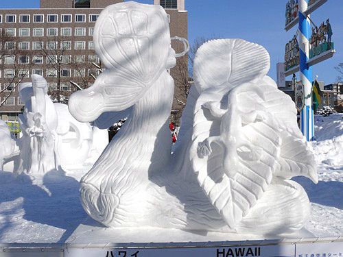 وقد ذكر فريق هاواي: ”نحن معتادون على نحت تماثيل من الجليد ولكن تختلف طريقة العمل بأي حال من الأحوال بين الثلج والجليد وهو امر مثير للإهتمام بالنسبة لنا. في حالة اذا كان المجسم أو التمثال من الثلج يمكن ان يتم إصلاحه بسهولة حيث أنه أكثر ليونة من الجليد“. وأضافوا انهم لا يواجهوا أية مشكلة الطقس البارد.