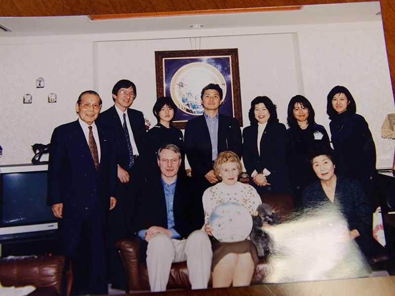 يظهر في الصورة هاري هوغان (بالمنتصف بالقرب من اليسار) والوالدة فاليري في زيارة لأفراد عائلة تاكيتسورو باليابان في عام ١٩٩٨. تم الترحيب بهم من قبل ابن ريتا بالتبني، تاكيشي (بأقصى اليسار). (الصورة من توني ماكنيكول).
