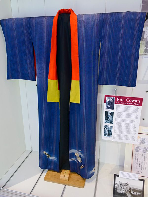 يظهر في الصورة الكيمونو وحزام أوبي الذي امتلكتها ريتا تاكتسورو قديماً. متحف أولد كيرك المحلي في كيركينتلوش. (الصورة من توني ماكنيكول).