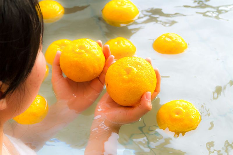 تلذذ بنكهة اليوزو الفريدة في الطعام واستخدم الباقي منها للاستحمام. فالرائحة الزكية ولونها الأصفر البرتقالي الجذاب مع ملمس الماء الدافئ في حمّام فاكهة اليوزو الساخن يجلب الراحة للجسم المتعب والدفئ في أيام الشتاء البارد. صدق الحكماء عندما أوصو به..